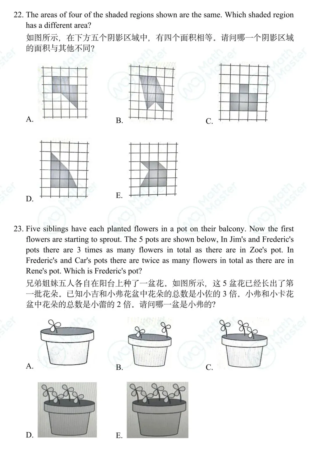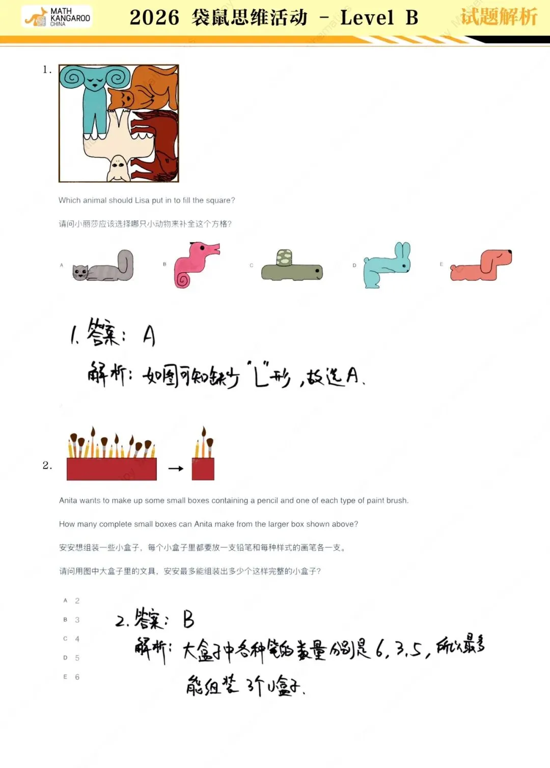 · 等级A:小学1年级&2年级(双语读题有拼音)