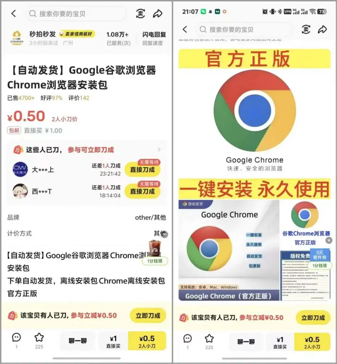 看「咸鱼」上的这款谷歌浏览器安装合集的销量就知道,月销4700+