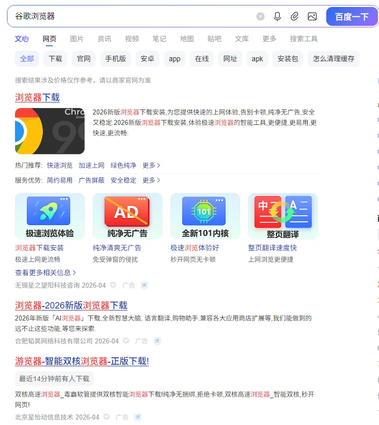 最主要的一个原因就是:「百度搜索前几页的广告太多了」。