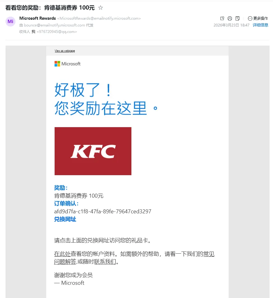 如果你是未领取和使用过微软积分的新用户,现在直接参与活动完成注册,可立刻获得 750 积分。(相当于 4 元钱)