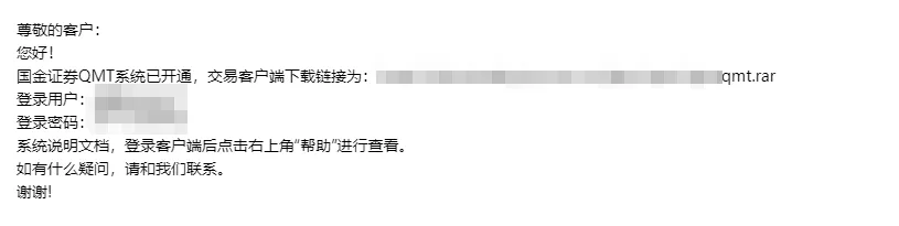 装备准备好后,我们来找到券商 QMT 的下载地址:开通权限后,一般下载链接直接发到客户邮箱的,如果没收到,可向自己的券商客户经理咨询。