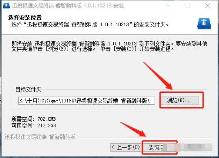 ③点击浏览选择安装目录。安装路径选择D盘,或E盘,不要选择C盘!选择完路径后点击安装
