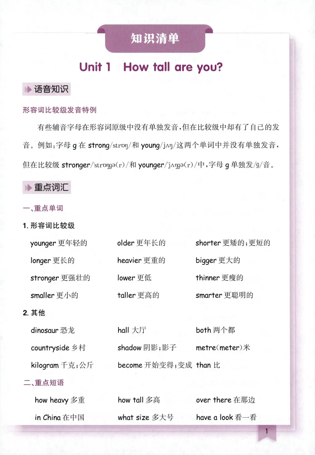 【免费下载】六年级(下)英语 全册知识清单《人教版PEP》,PDF电子版,共24页,先保存,以免资源失效