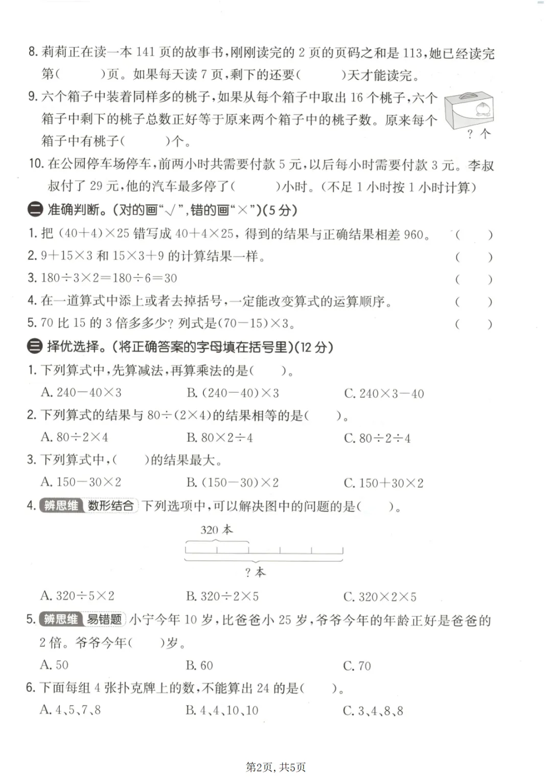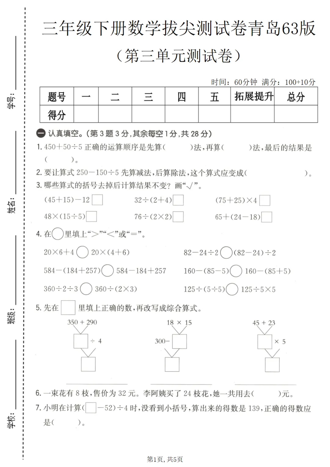 三年级(下)数学 第三单元拔尖测试卷《青岛63版》(1)