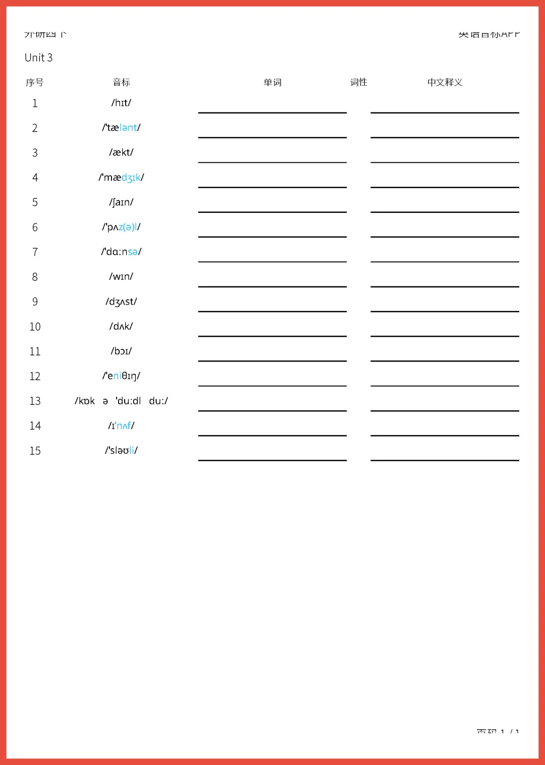 【免费下载】Unit 3 看音标默单词【外研】四下英语单词背诵默写 | PDF完整高清电子版可打印