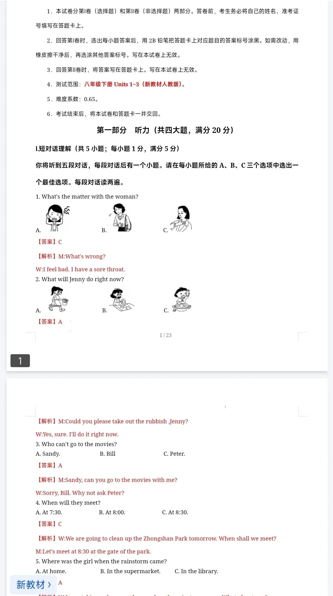 2026年春《仁爱科普版》八年级下册月考试卷+答案解析(含听力音频)