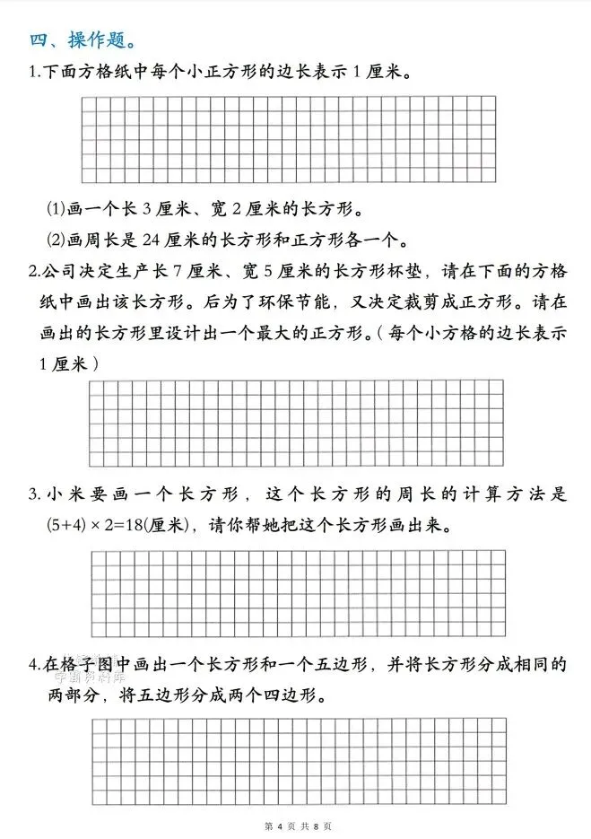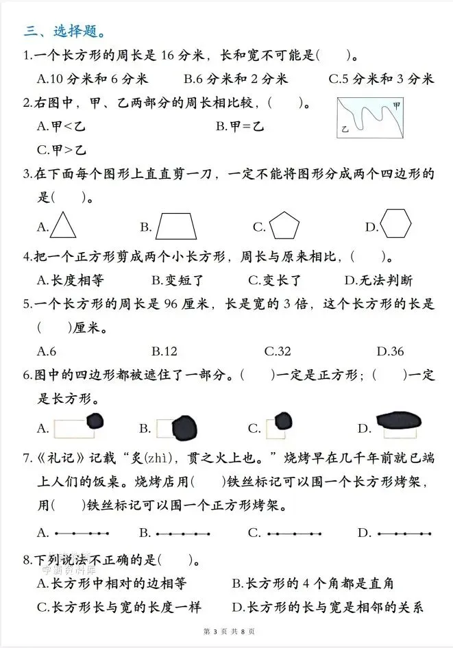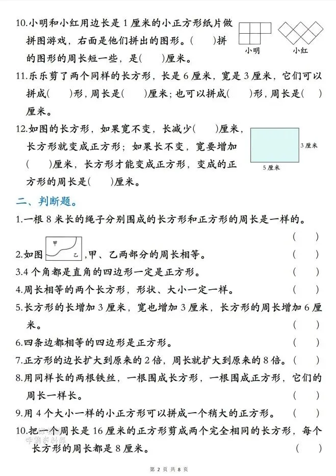 文末免费下载|26春三年级下册数学长方形和正方形专项