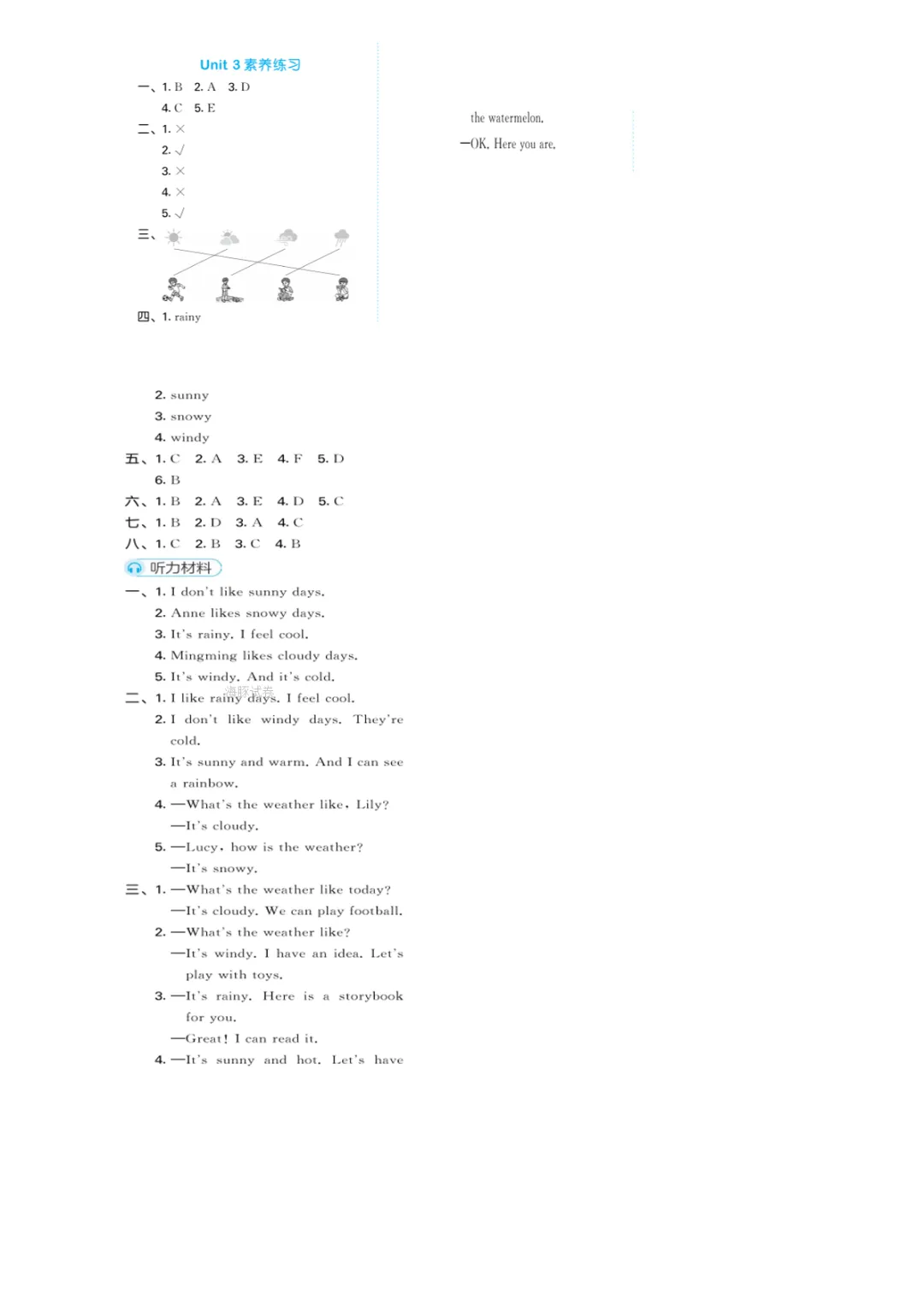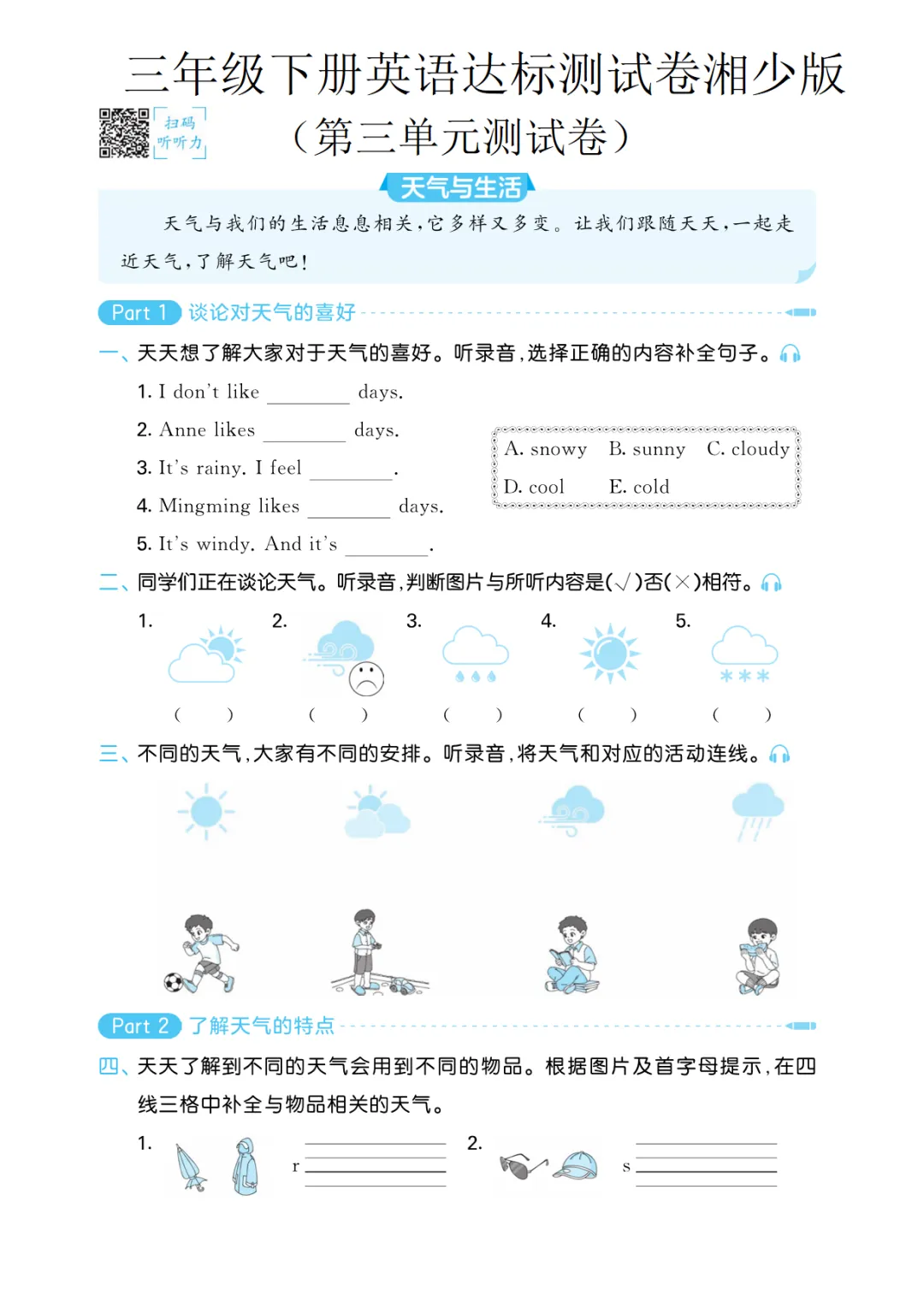 三年级(下)英语 第三单元达标测试卷《湘少版》