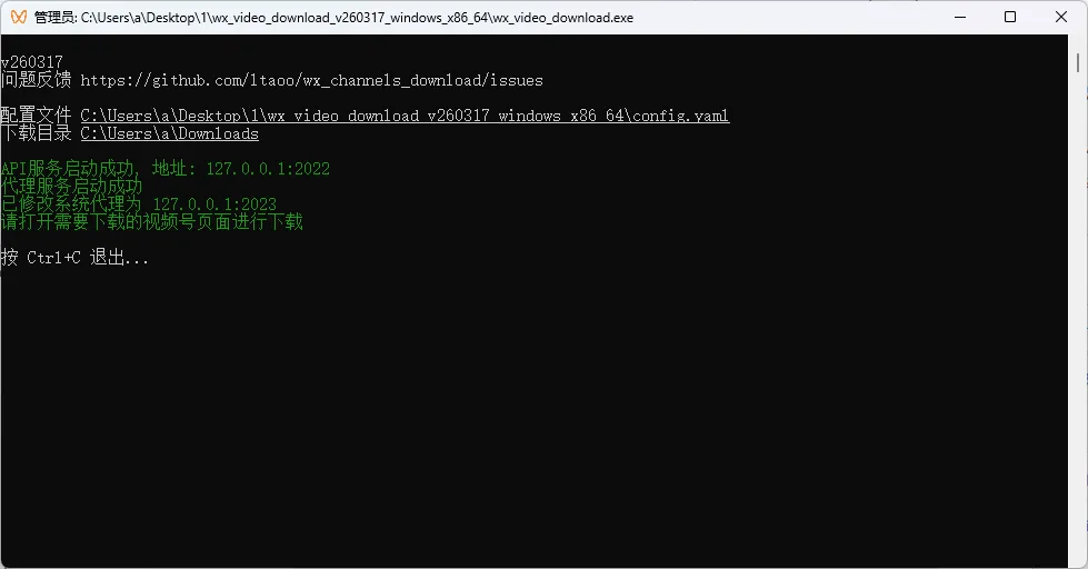 右击以管理员身份运行打开 【wx_video_download.exe】