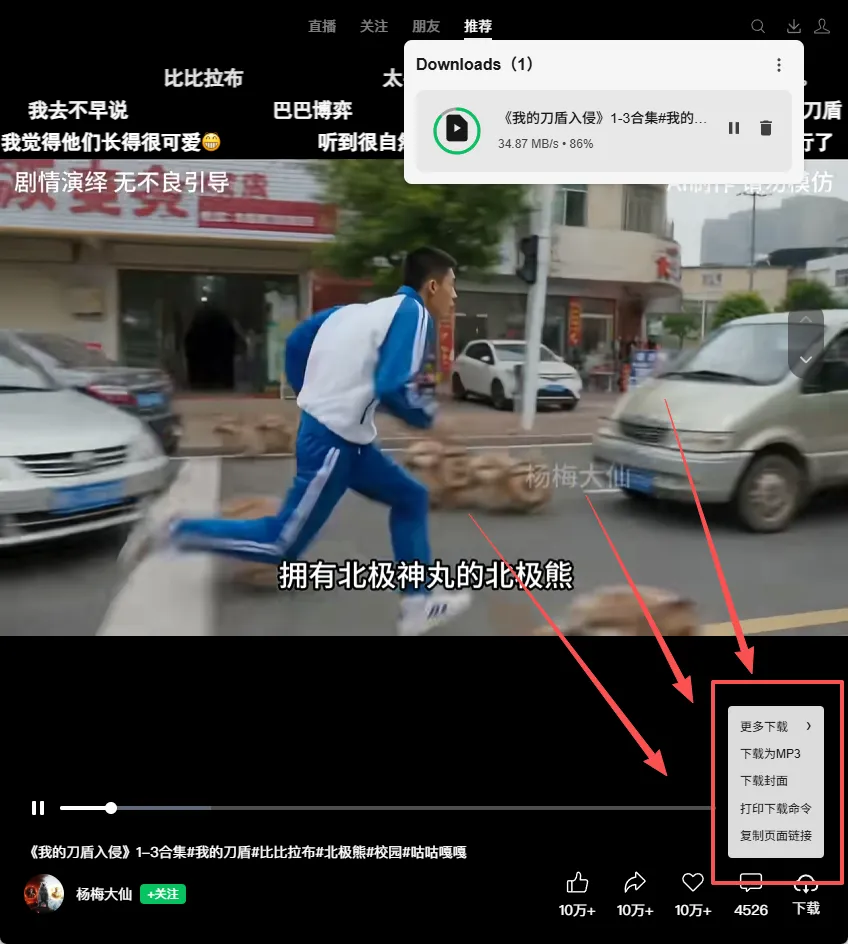 如果进来没有显示这个【下载】按钮,可以多划几个视频,或者重新进入一下视频号试试。然后点击按钮,选择“下载视频”或“下载MP3”,即可自动保存到你的电脑中!