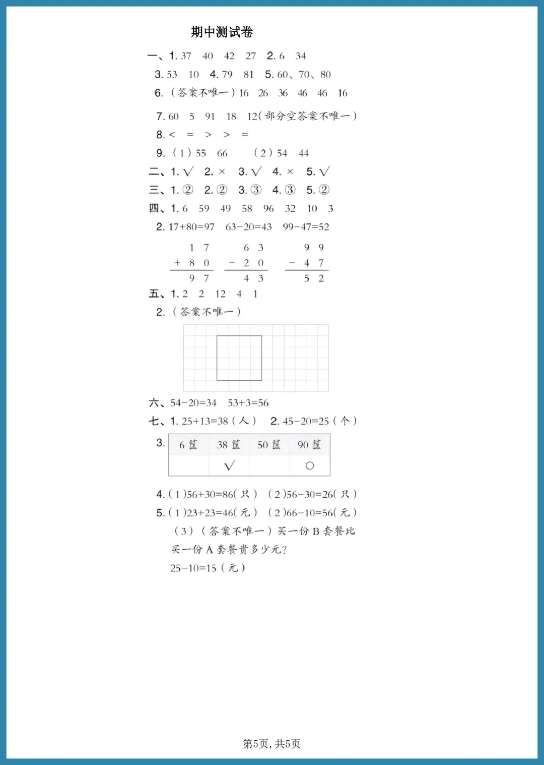 各位家长看过来!这份 2024 年西师版一年级下册数学期中达标测试卷来啦,共 5 页精编内容。试卷紧扣教材重点,涵盖前半学期核心知识点,题型丰富多样,能帮孩子全面查漏补缺,熟悉考试节奏,轻松建立自信心。考前练一练,效果大不同!需要资源的家长别犹豫,赶紧下载打印给孩子做一做,助力孩子期中拿高分,加油!