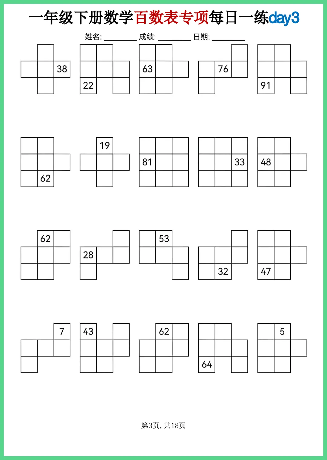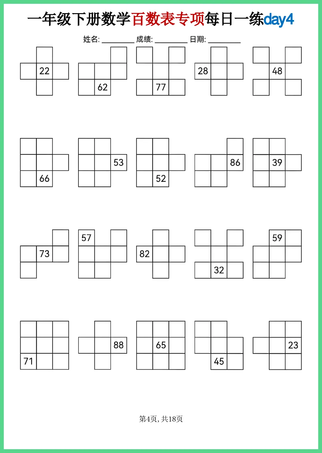【免费下载】一年级(下)数学_百数表专项每日一练 | PDF完整高清电子版可打印