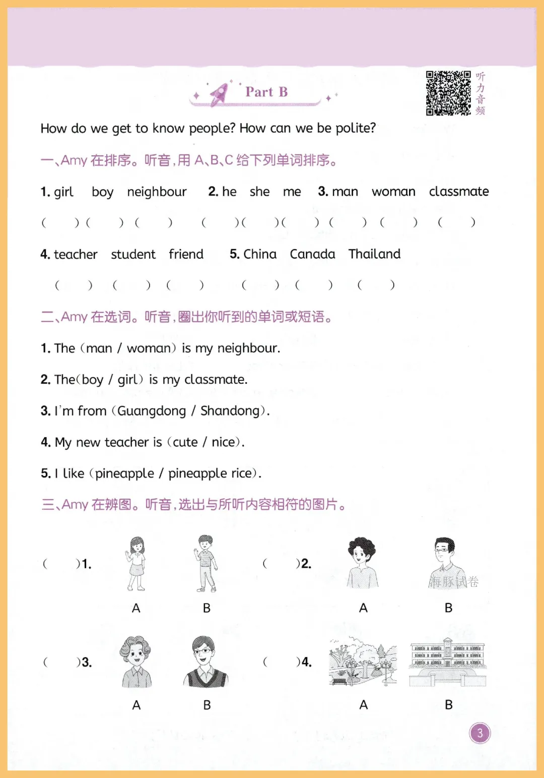 各位家长看过来!这份 2024 年最新版人教版 PEP 三年级下册英语同步听力训练来啦,全套共 33 页,紧扣教材进度。资料涵盖单元核心词汇与日常对话场景,通过多样化的听音辨词、情景问答等题型,帮助孩子磨耳朵、抓重点,轻松攻克听力难关,提升语感与应试能力。每天练一练,孩子自信开口说英语!资源已整理好,需要的家长抓紧打印给孩子练一练吧,别让听力成为拉分项!