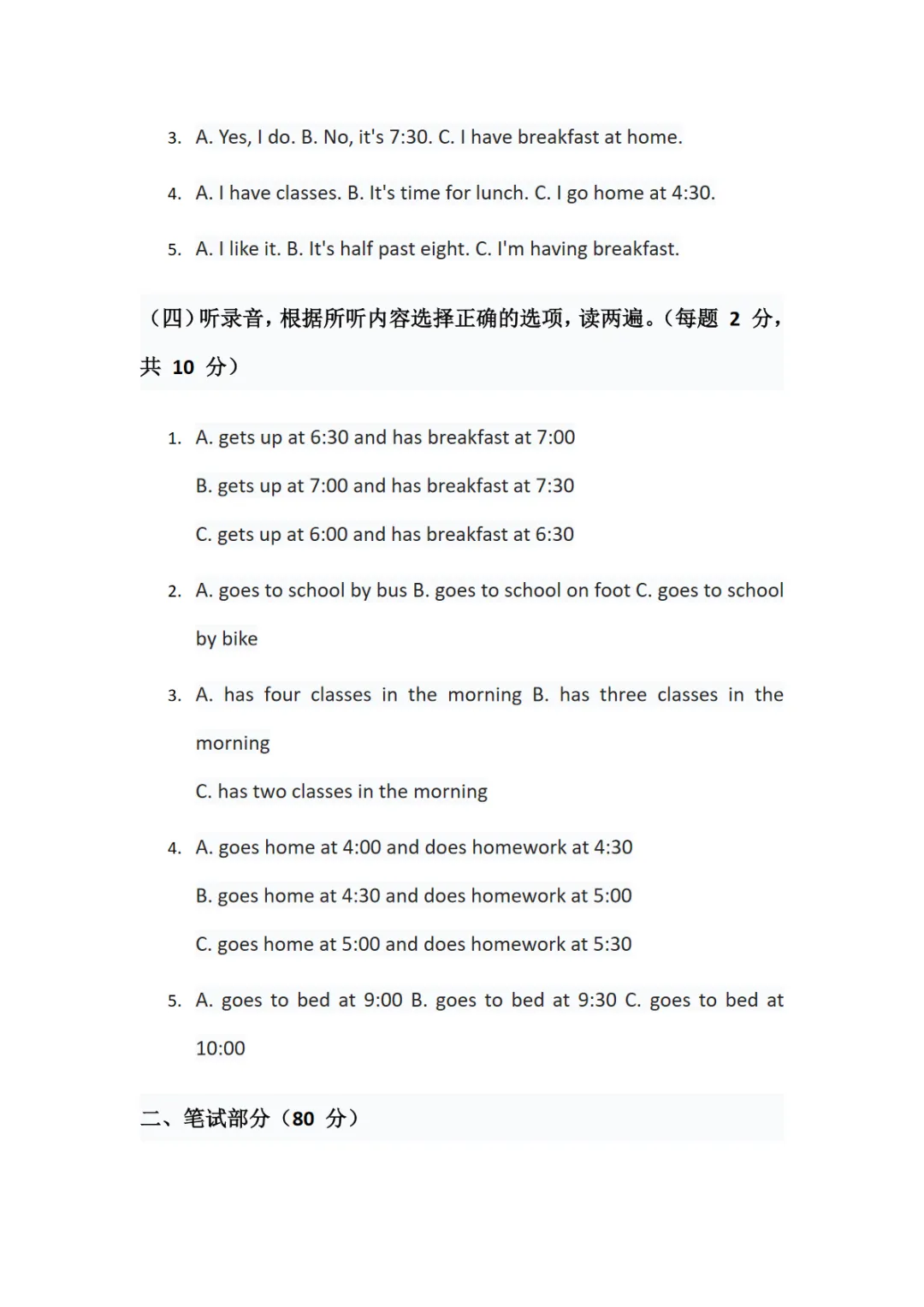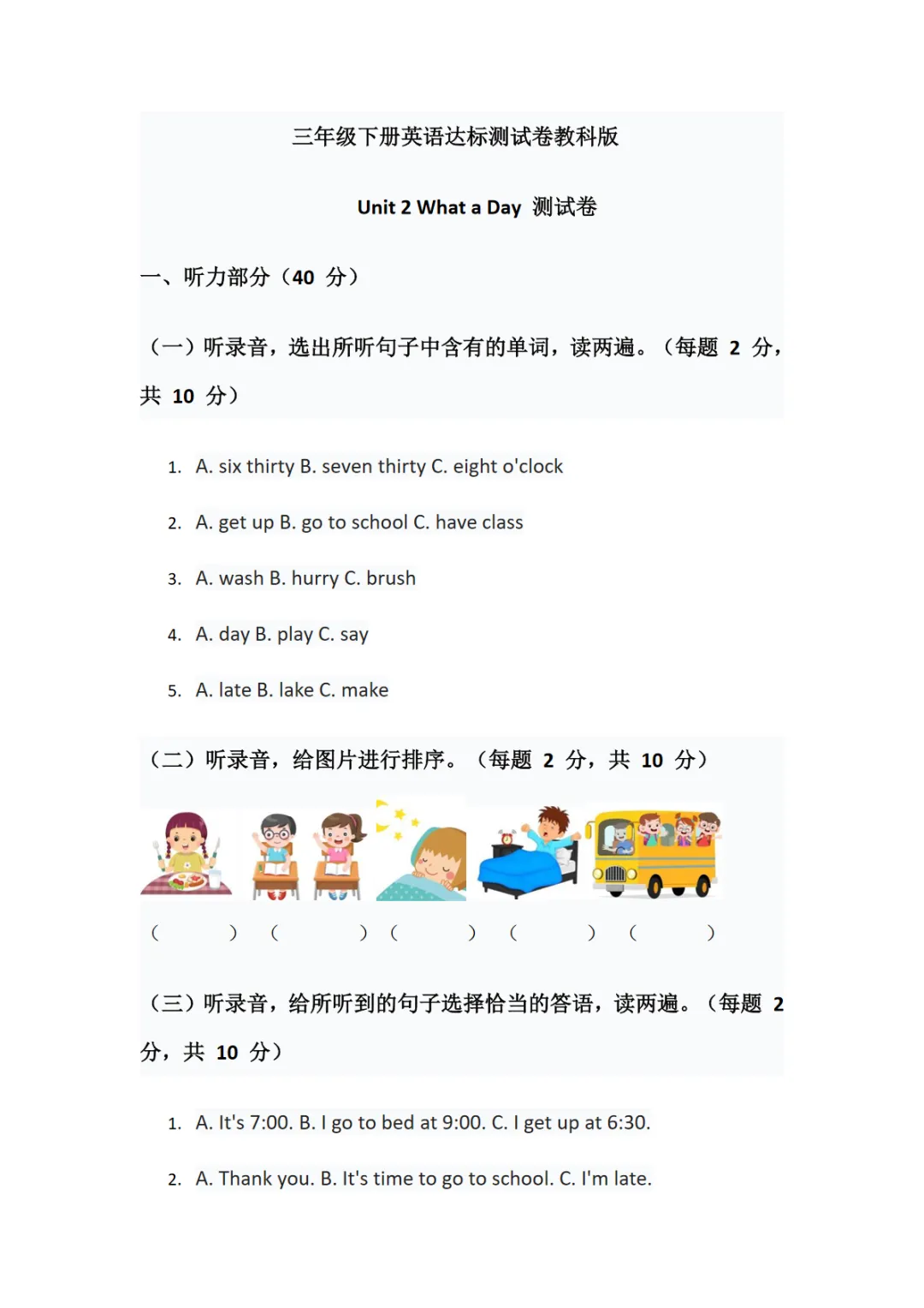 三年级(下)英语 Unit 2 综合测试卷(含听力原文)《教科版》