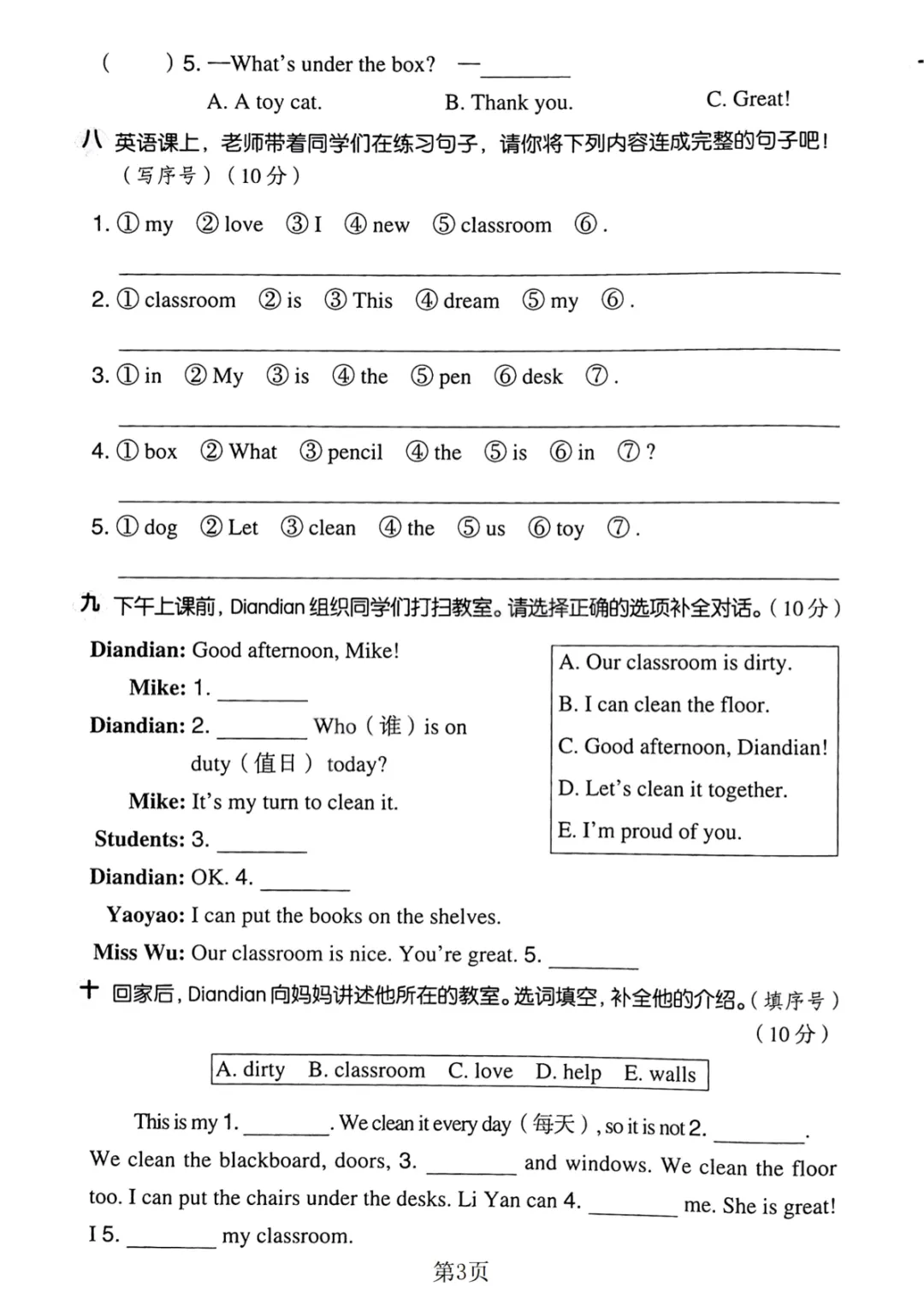 三年级(下)英语 第一单元测试卷2《人教精通版》