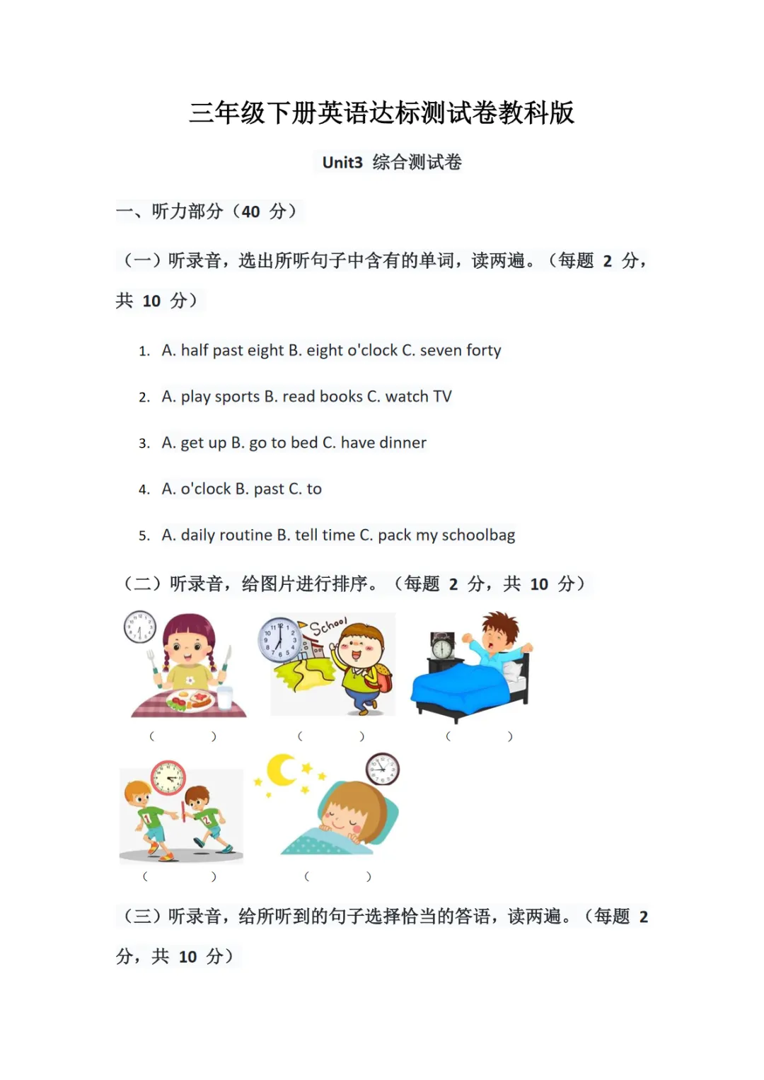 三年级(下)英语 Unit 3 综合测试卷(含听力原文)《教科版》