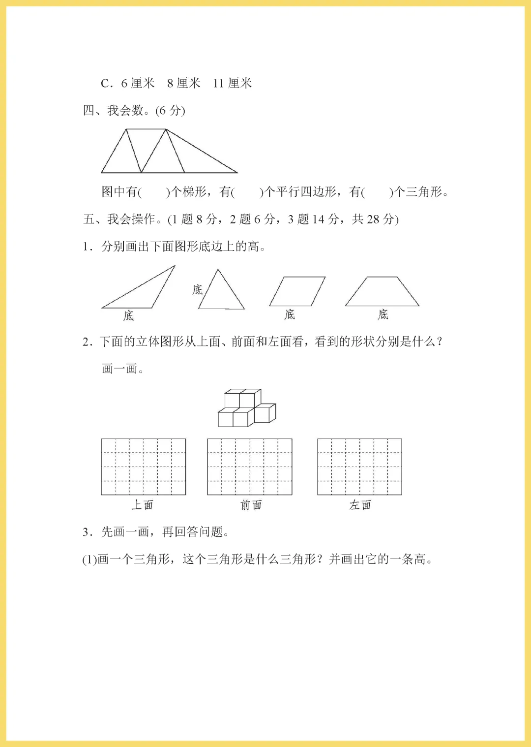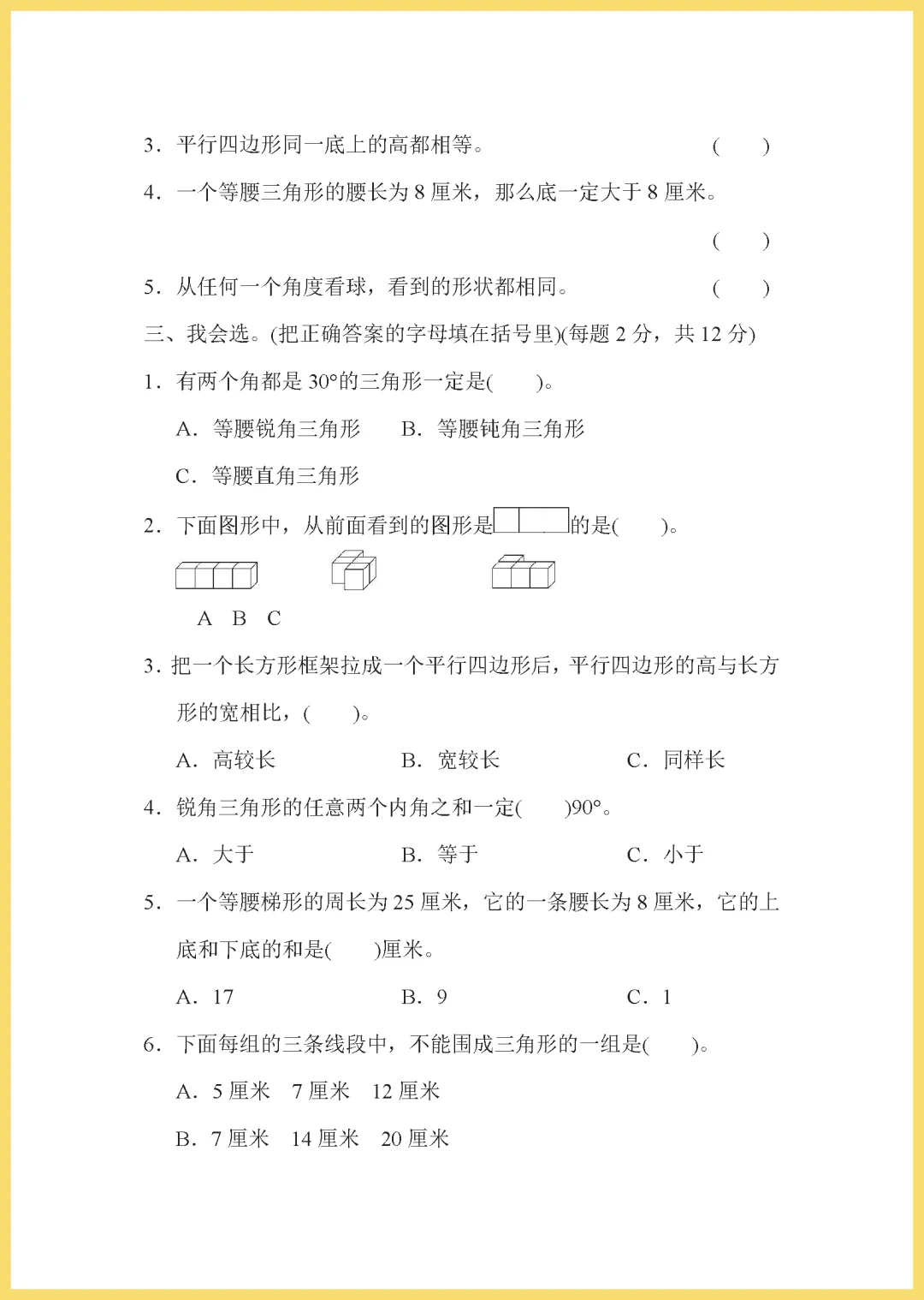 家长们看过来!这份 2024 年青岛版六年级下册数学专项练习——《模块过关卷 2:图形与几何》,共 8 页精华内容,专为孩子量身打造。试卷紧扣教材重点,涵盖图形特征、面积计算及空间想象等核心考点,通过典型例题帮助孩子梳理知识盲区,强化解题思路,轻松攻克几何难题。想要孩子数学成绩稳步提升?赶紧下载打印,让孩子趁热打铁练一练,巩固基础,自信迎考!