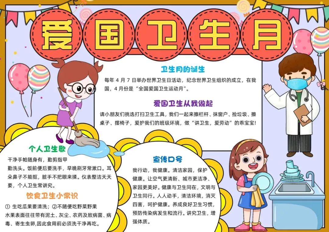 【免费下载】10套《全国爱国卫生月》小报手抄报模板,Word格式含线稿!