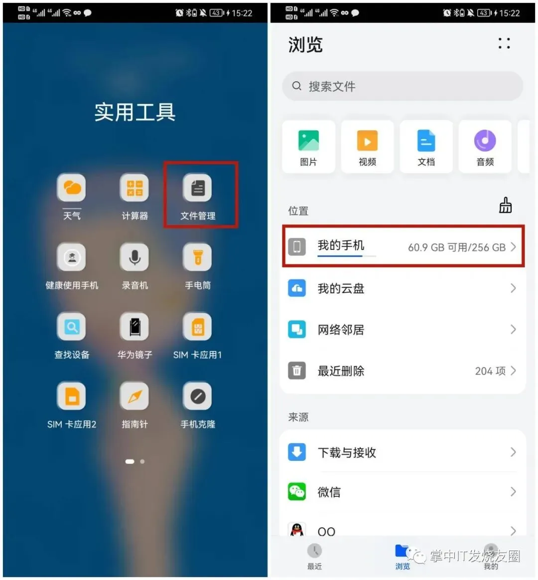 2.找到缓存文件:首先打开手机的文件管理,找到手机的本地储存空间;