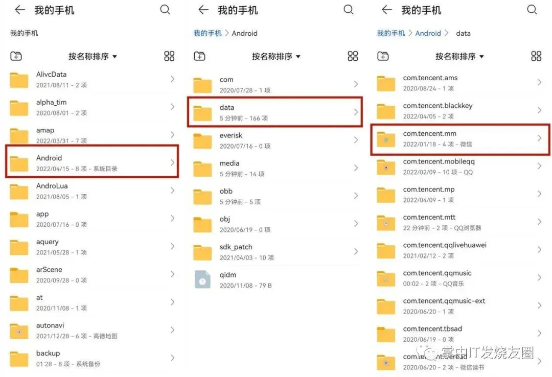 ①.依次打开文件夹:Android—data—com.Tencent.mm;