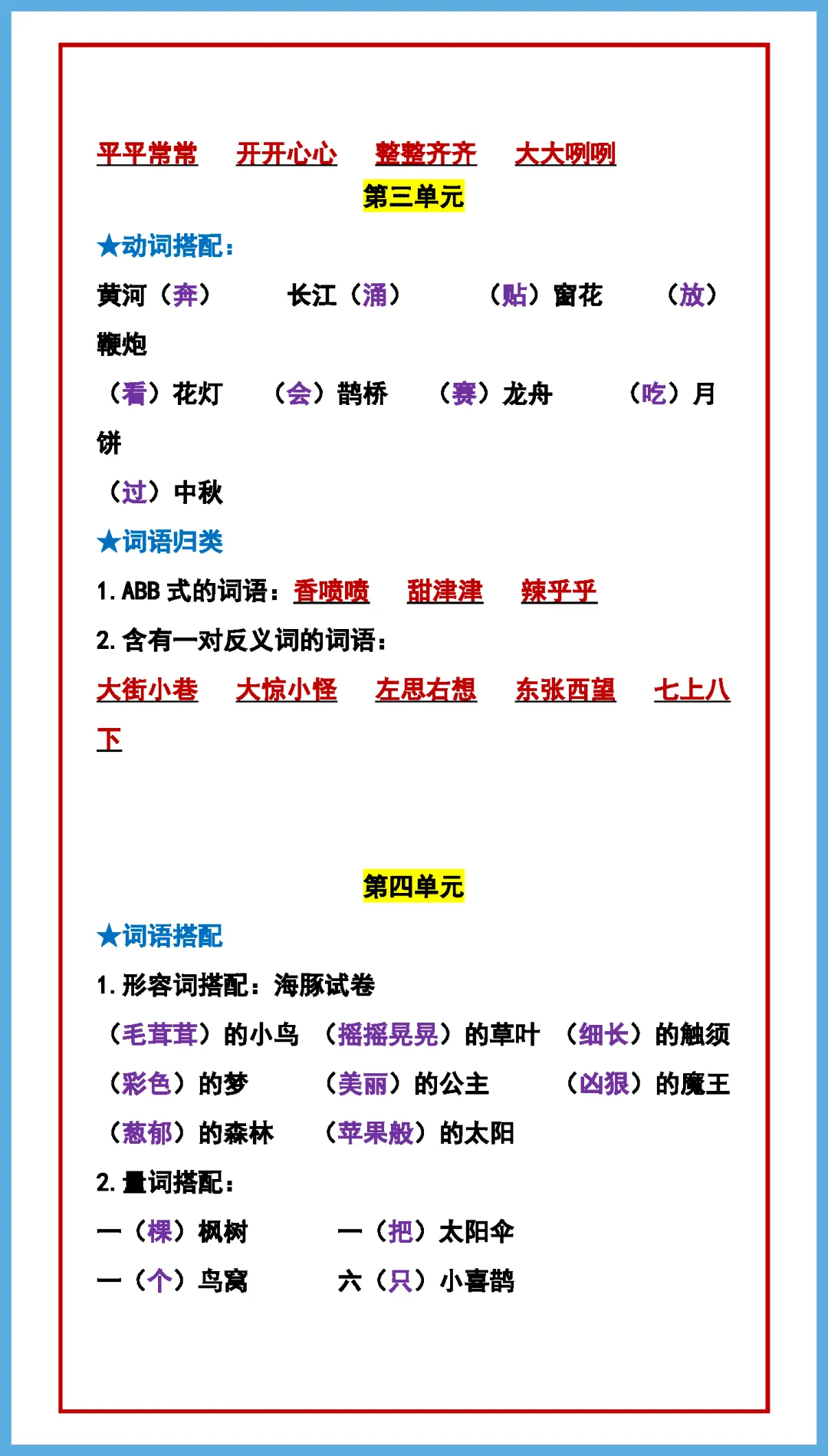 【免费下载】二年级(下)语文_期中复习:常考词语搭配 | PDF完整高清电子版可打印