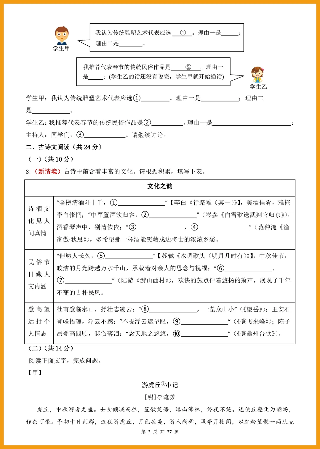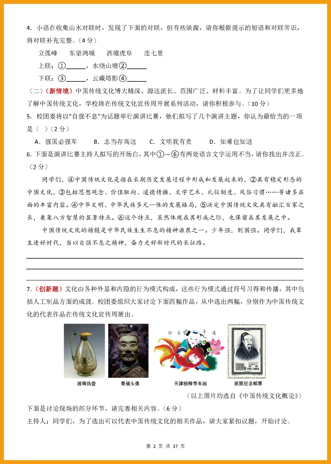 各位家长注意啦!2026 年中考语文第一次模拟考试(全国通用版)新鲜出炉,全套共 37 页,专为初三学子量身打造。试卷紧扣最新考纲,涵盖基础积累、现代文阅读及写作等核心板块,题型新颖且解析详尽。孩子通过实战演练,不仅能精准查漏补缺,还能提前适应考场节奏,有效提升应试信心与得分能力。机会难得,需要的家长赶紧下载打印,让孩子趁热打铁练一练,为明年中考抢占先机!