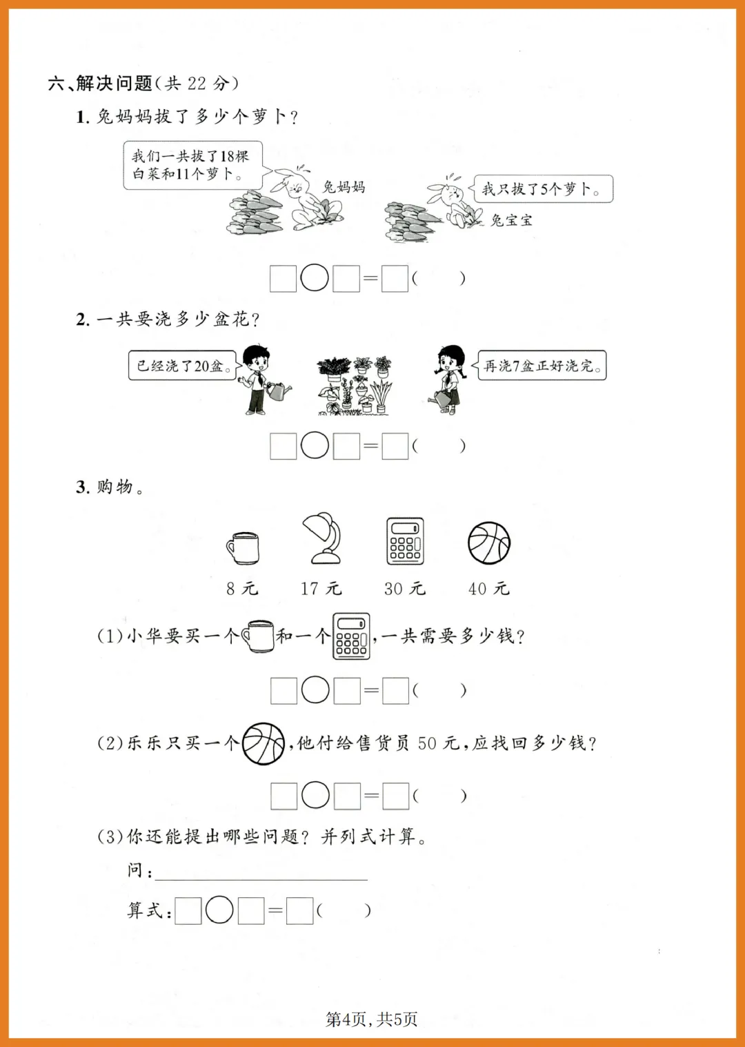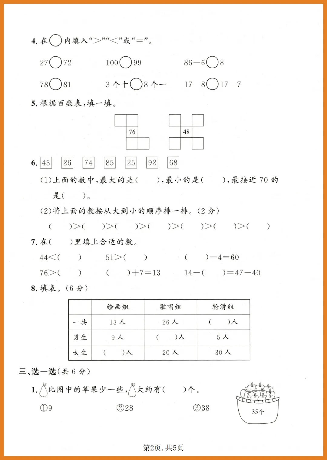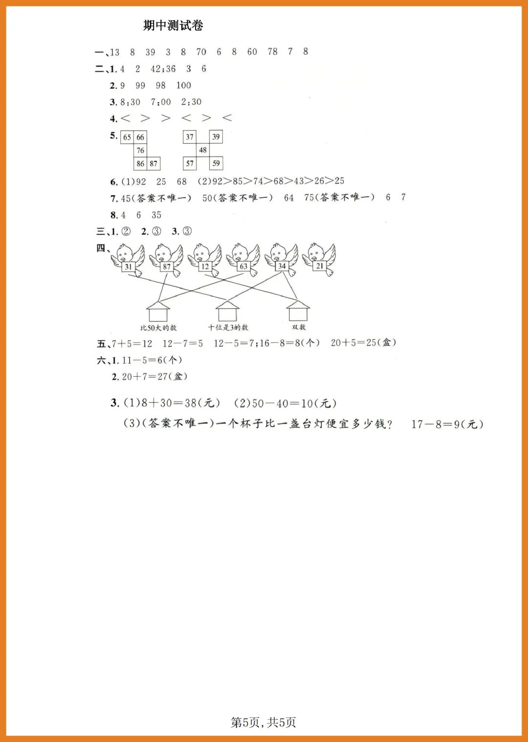 【免费下载】一年级(下)数学_期中达标测试卷《沪教版》 | PDF完整高清电子版可打印