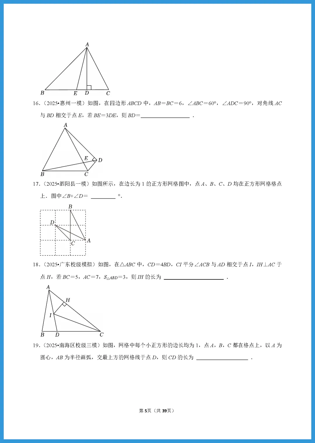 【免费下载】中考数学一轮复习_三角形专项练习 | PDF完整高清电子版可打印