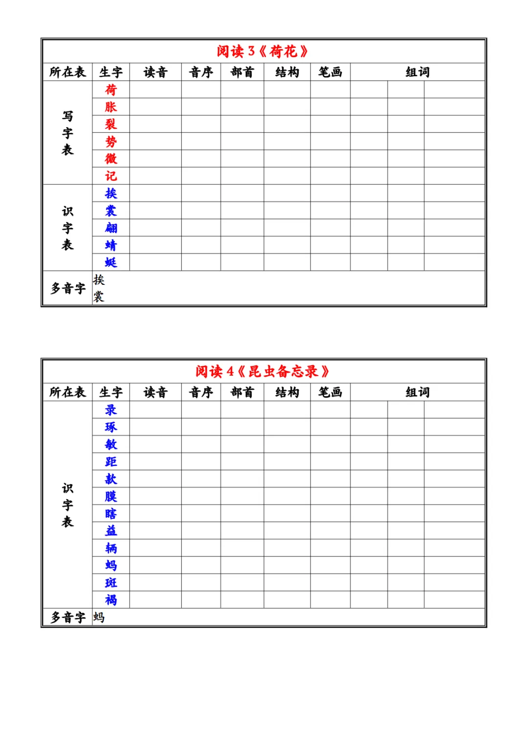 三年级(下)语文 26春《写字表识字表》注音组词小贴