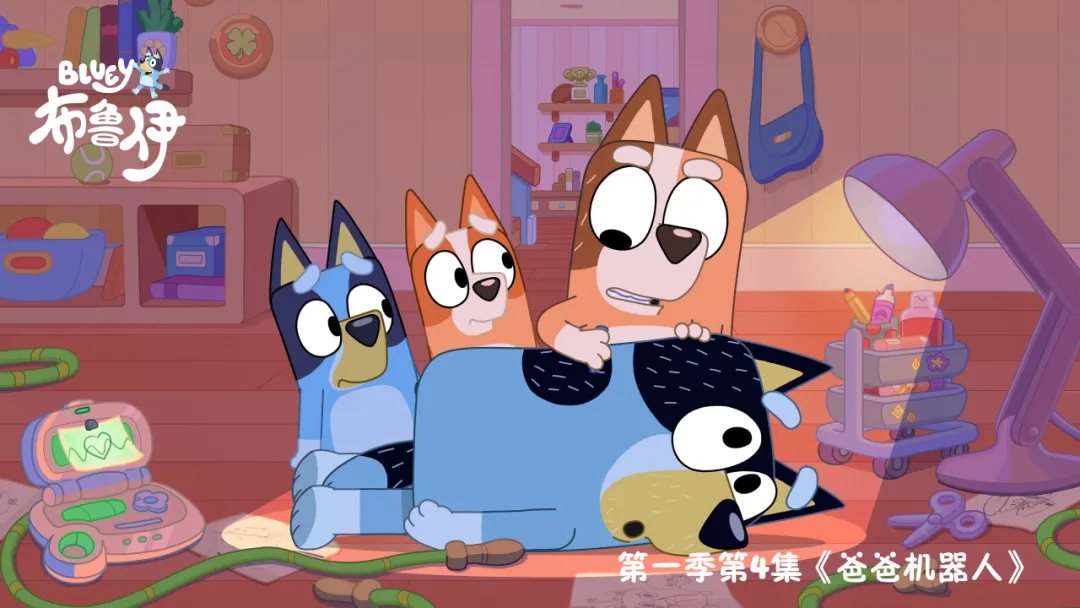 动画片《布鲁伊》讲述了爸爸班底特、妈妈奇莉和姐姐布鲁伊、妹妹宾果一家四口温馨快乐的家庭生活。动画片围绕孩子在游戏中学习和成长的童年时光,向观众展示了当今父母尽职、努力营造高质量亲子关系的过程。《布鲁伊》曾获国际儿童艾美奖等多项国际大奖,豆瓣三季节目评分均高达9.7分。