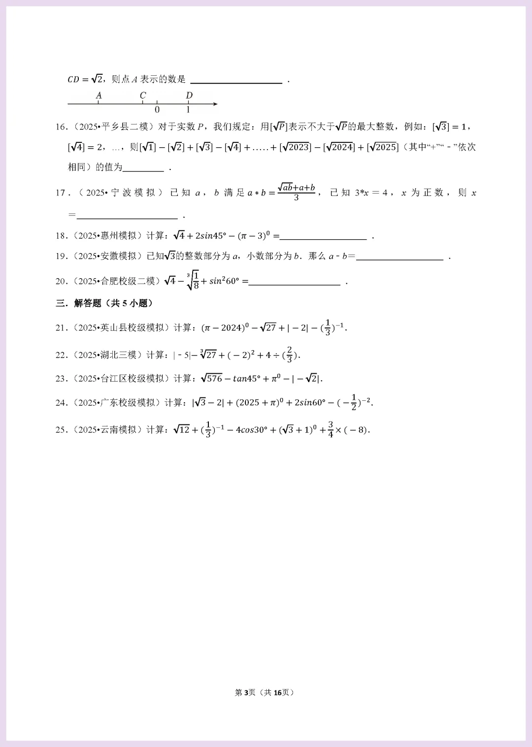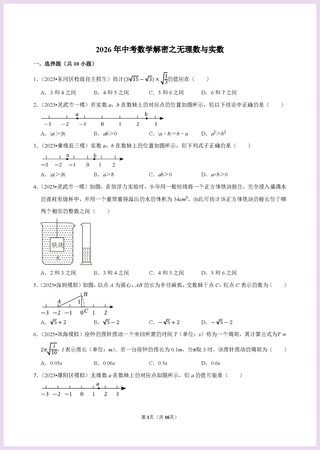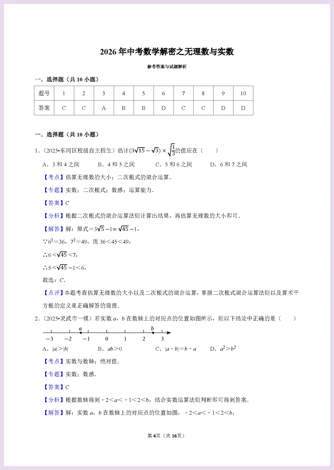 各位家长注意啦!这份 2024 最新版中考数学一轮复习资料,专为初三学子打造,聚焦“无理数与实数”核心考点,整整 16 页专项练习。内容涵盖概念辨析、计算技巧及经典易错题,旨在帮孩子夯实基础,彻底攻克实数难关,提升解题准确率。一轮复习关键期,查漏补缺就靠它!需要的家长赶紧收藏,抓紧打印给孩子练一练吧,助孩子自信迎战中考!