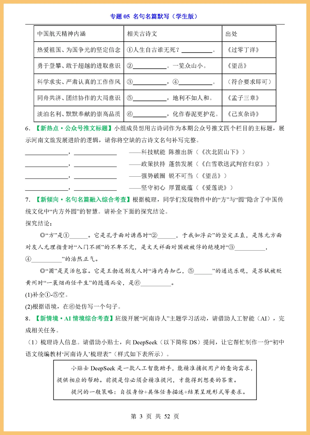 【免费下载】2026中考专项语文专题05名句名篇默写 | PDF完整高清电子版可打印