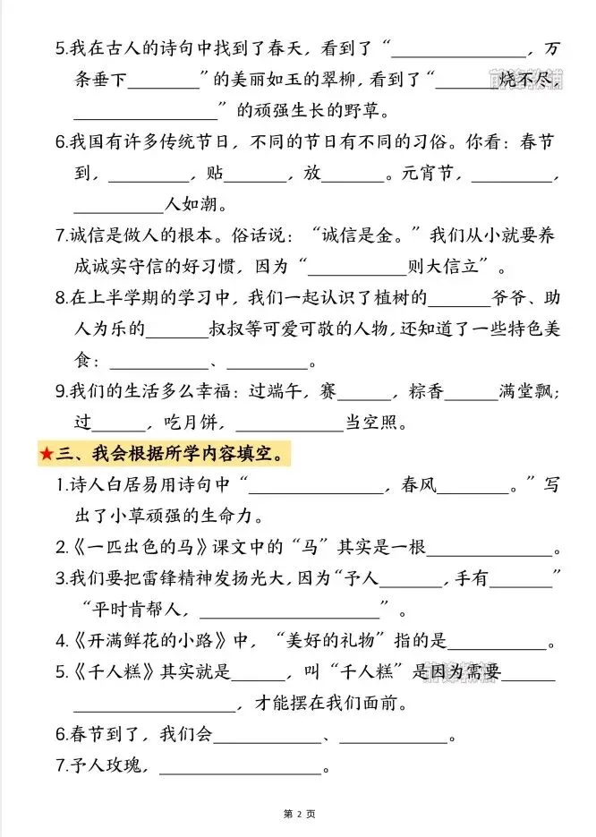 文末免费下载|26春二年级下册语文期中考点默写专项练习(附答案)