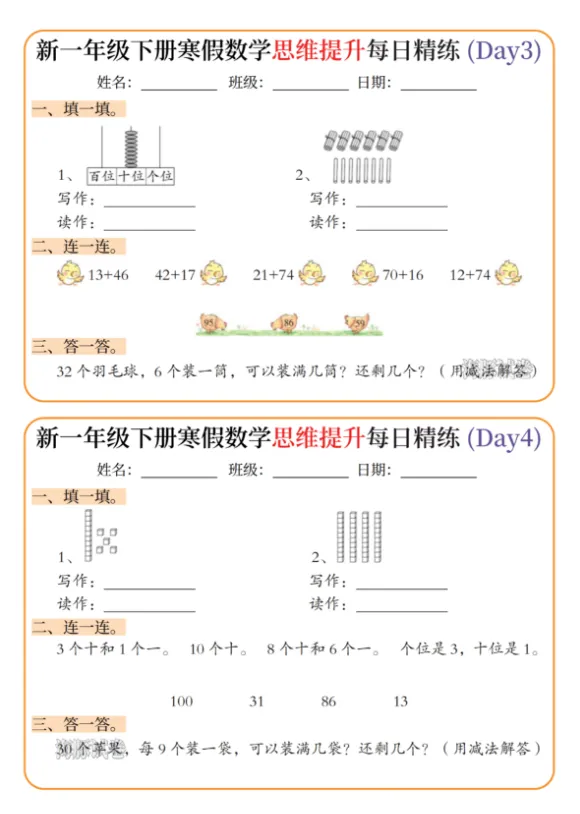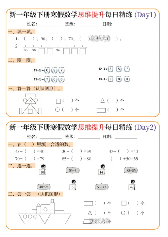 【免费下载】26春一年级(下)寒假数学思维提升每日精练,PDF电子版,可打印