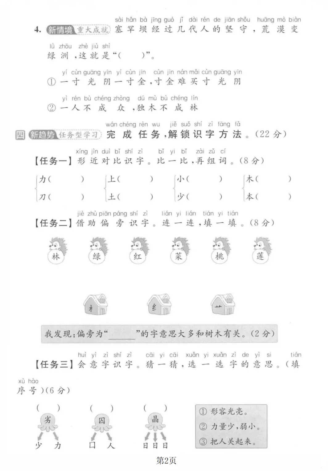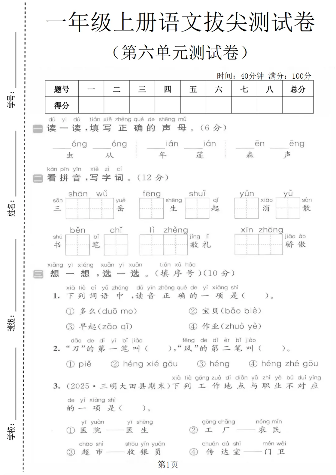 一年级上语文第六单元拔尖测试卷