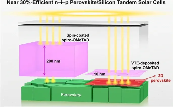 中文题目:蒸镀超薄spiro-OMeTAD助力n-i-p钙钛矿/晶硅叠层太阳能电池效率与稳定性突破