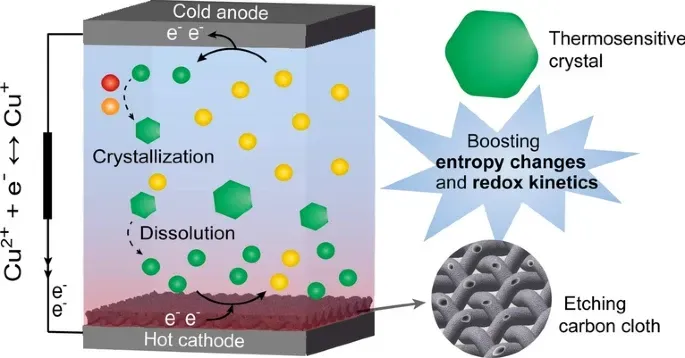 131. High-Performance Cu-Based Liquid Thermocells Enabled by Thermosensitive Crystallization and Etched Carbon Cloth Electrode (ARTICLE)