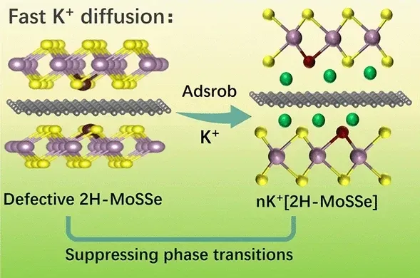 中文题目:纳米反应器构型缺陷MoS₂抑制嵌钾相变、增强钾离子电池循环可逆性