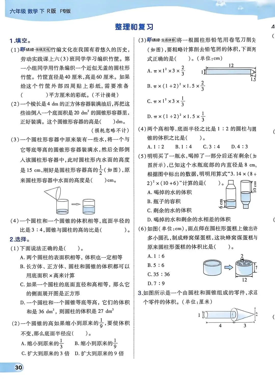 >六年级下数学阶段复习期中复习专项练习免费下载