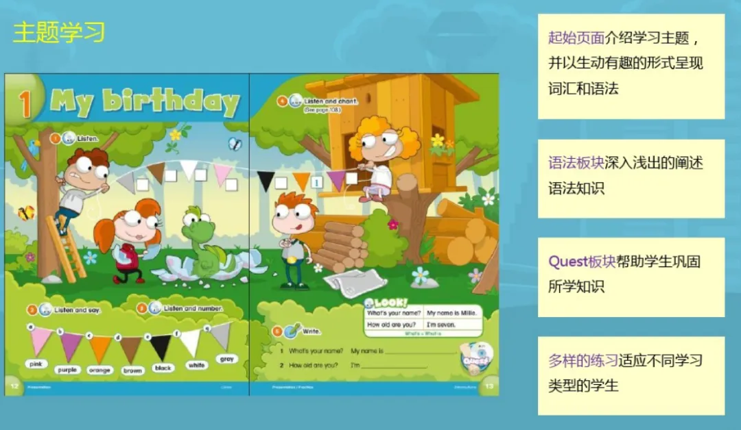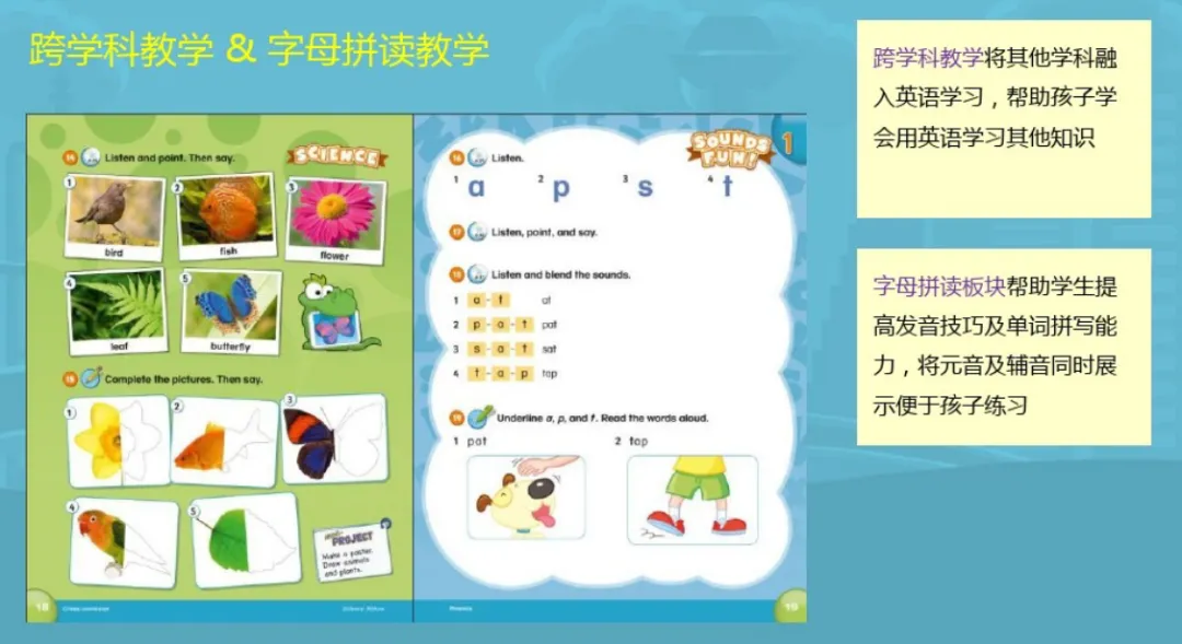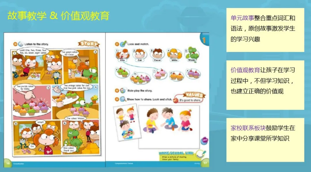 Our Discovery Island以学习即探索的理念, 结合主题教学、日常生活情境教学、故事教学、价值观教育、跨学科教学以及字母拼读教学, 让孩子从听说到读写,循序渐进地进行英语学习, 提高学习效果。