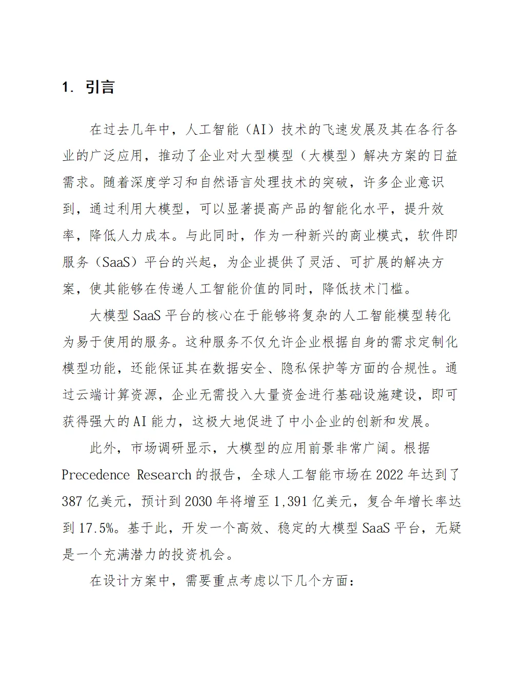 限时免费下载:AI大模型人工智能行业大模型SaaS平台设计方案