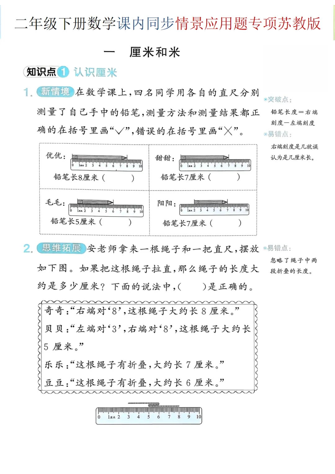 【免费下载】二年级(下)数学 课内同步情景应用题专项《苏教版》,PDF电子版,共32页,先保存,以免资源失效