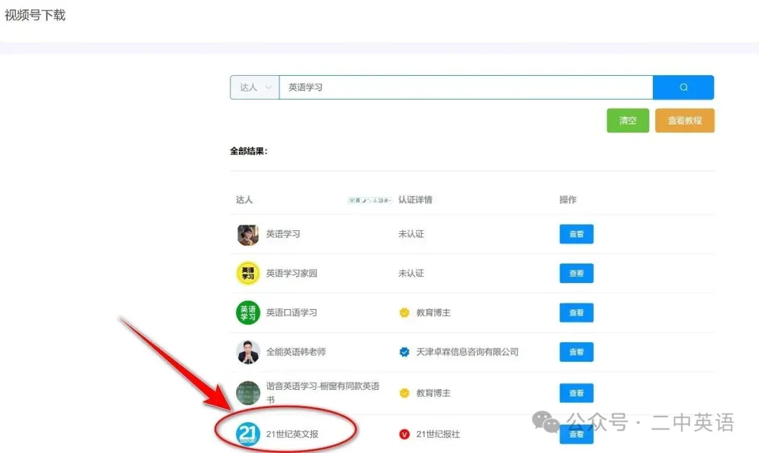 咱们一步步来哈,你先打开浏览器,输入这个网址,进入网页之后,你能看到几个主要的功能选项,其中就有“视频号下载”,你直接点这个选项就行。点进去之后,页面上有个搜索框,让你输入视频号作者的名称,比如你想下载“21世纪报”的视频,就把这个名字输进去。而且它支持模糊搜索,哪怕你记不全名字,输个大概,也能找到对应的作者。搜出来之后,你可以看看头像是不是你要找的那个人,确认一下,避免找错了。
