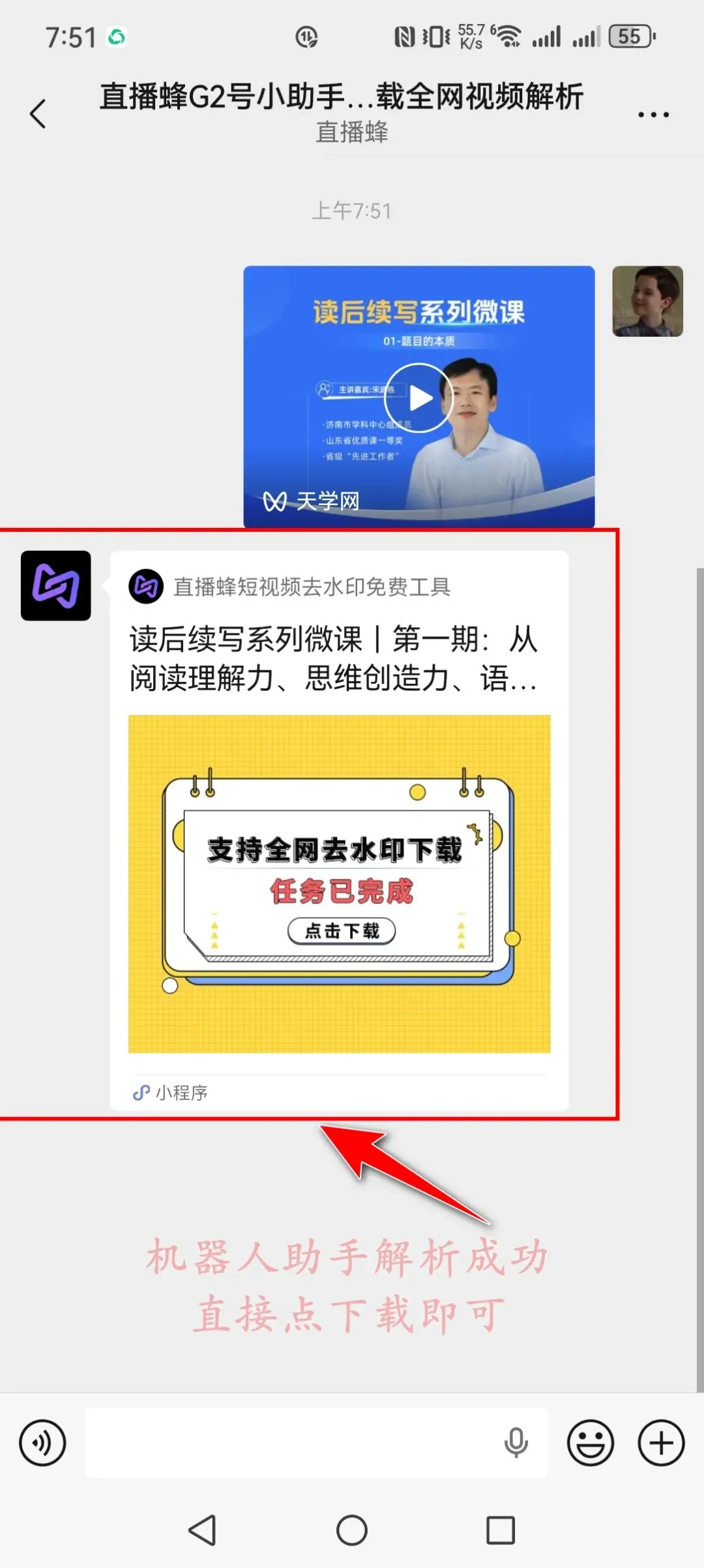 step3 发送视频给你刚添加的机器人助手,然后直接下载。