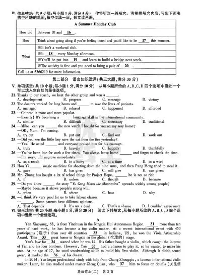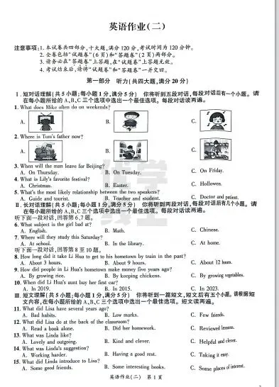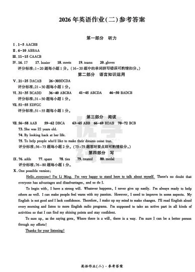 ●上海市2026届宝山区初三一模英语试题和答案解析(附听力音频+听力文稿)