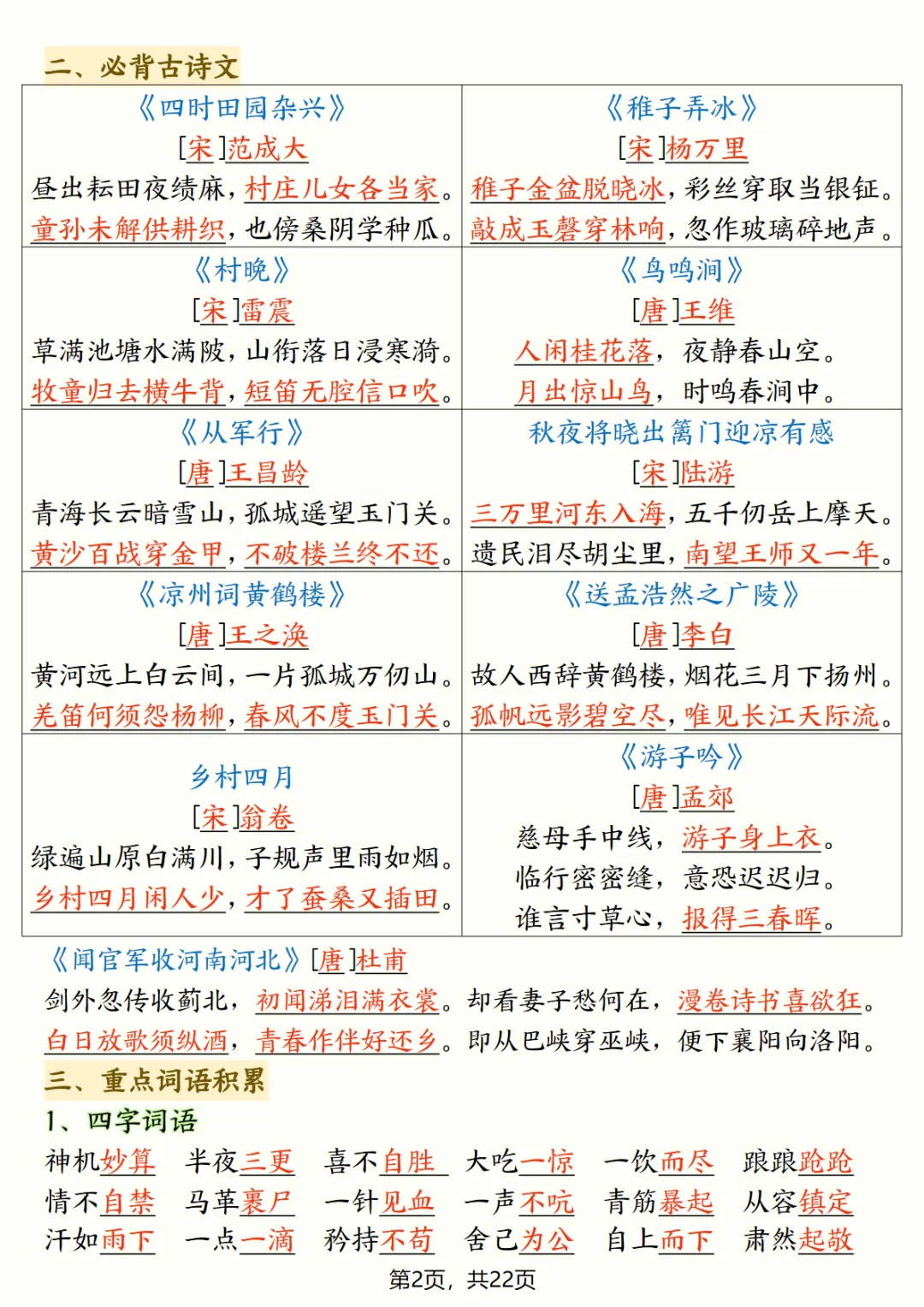 五年级(下)语文 全册高频考点总结