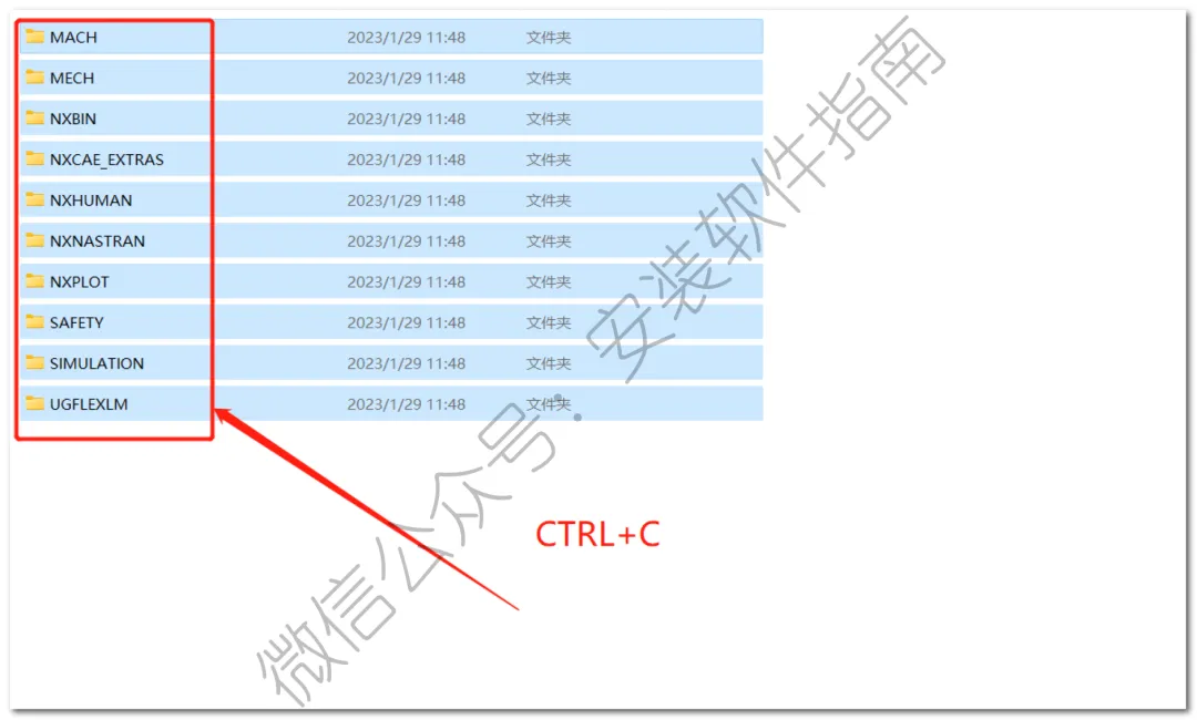 32.回到【Crack】文件夹,进入【NX2212】文件夹内,选中全部文件夹,并复制。