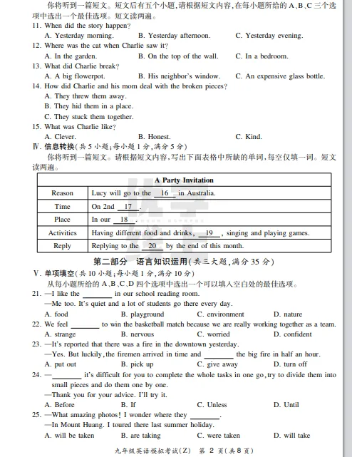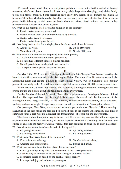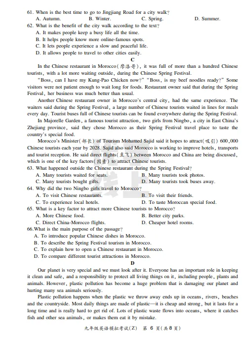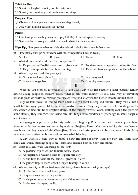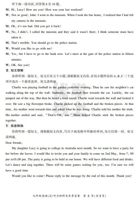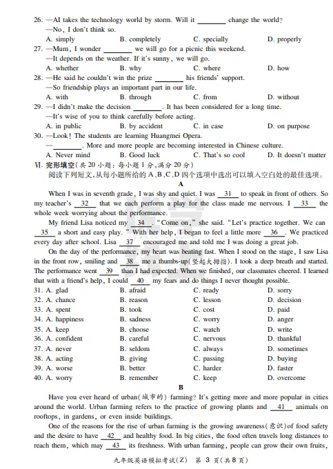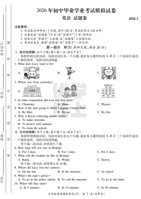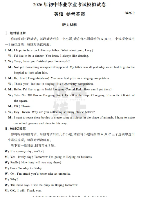 ●上海市2026届宝山区初三一模英语试题和答案解析(附听力音频+听力文稿)