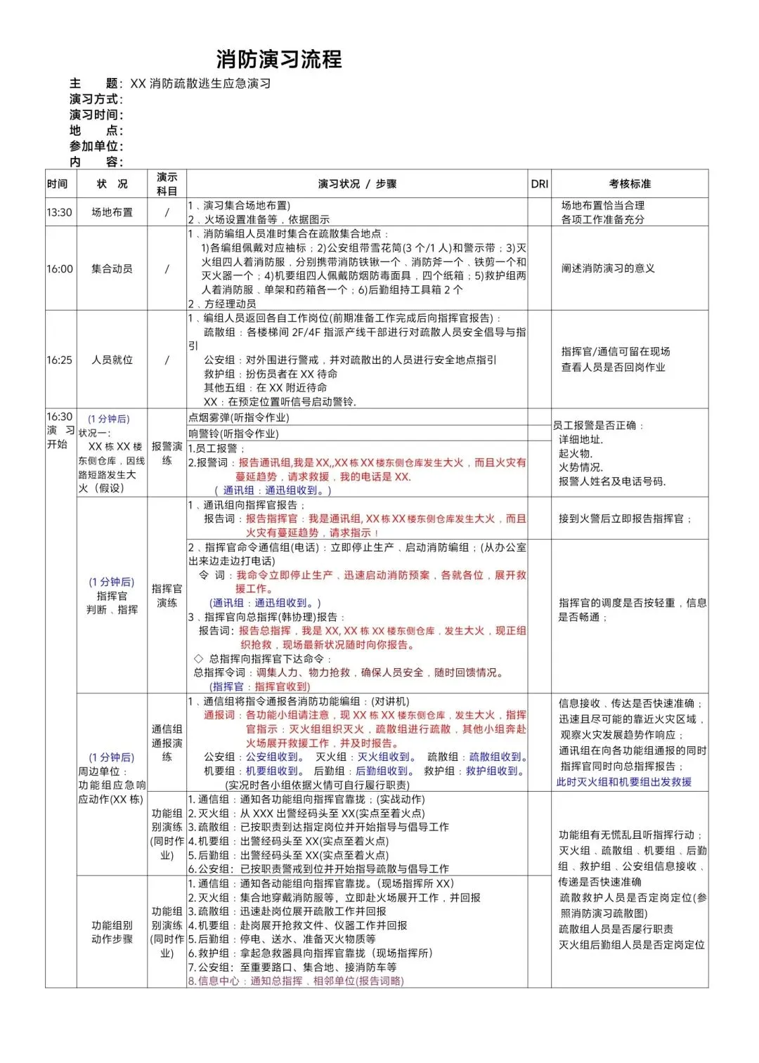 规范高效的消防演习遵循准备、实施、总结闭环流程。演习前明确组织机构,划分指挥、灭火、疏散、救护、警戒、后勤等小组,完成场地布置、器材检查、人员分工与动员宣讲,明确各岗位职责与行动路线。演习启动后,按模拟火情、人工报警、启动预案、组织疏散、初期灭火、伤员救护、配合专业救援等步骤有序推进,全程确保信息畅通、行动统一。人员疏散遵循低姿弯腰、捂口鼻、靠右有序撤离,到达集合点立即清点人数,确保不漏一人。