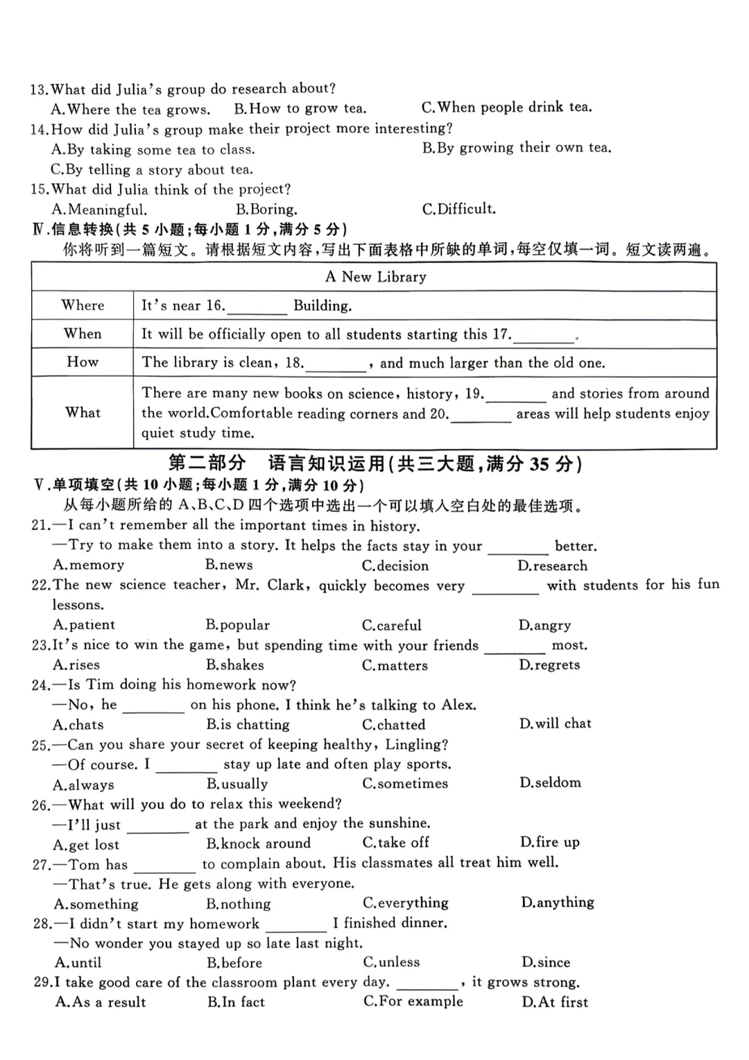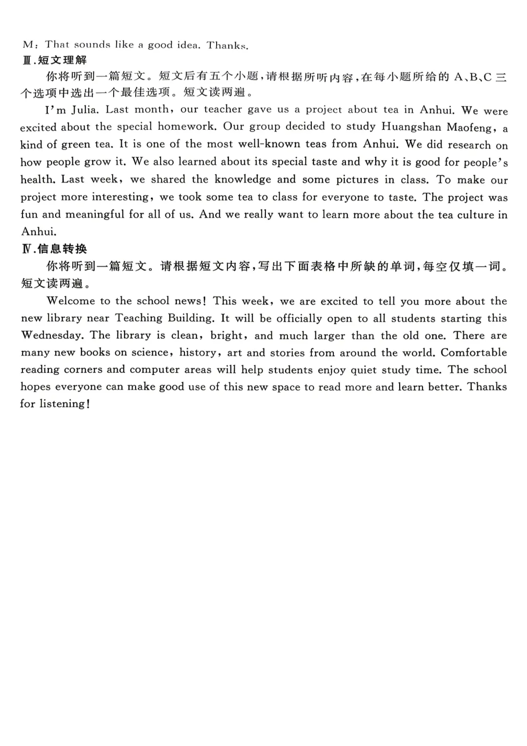 ●上海市2026届宝山区初三一模英语试题和答案解析(附听力音频+听力文稿)